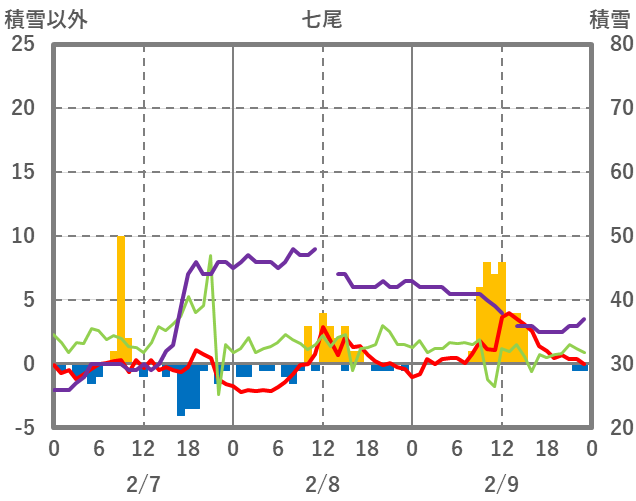 | 日 | 時 | 気温 | 降水 | 風向/風速 | 日照 | 積雪 | 降雪 |
