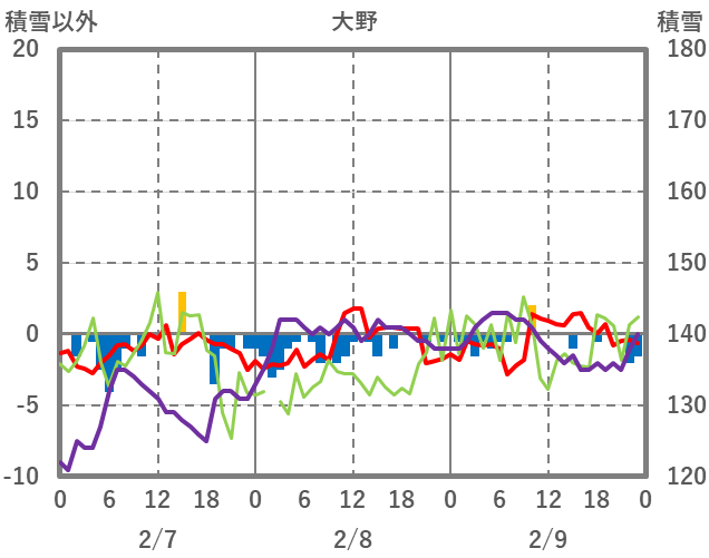 | 日 | 時 | 気温 | 降水 | 風向/風速 | 日照 | 積雪 | 降雪 |