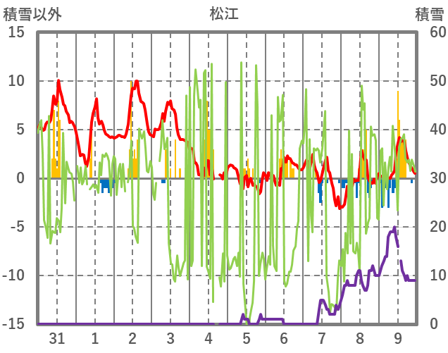 | 日 | 時 | 気温 | 降水 | 風向/風速 | 日照 | 積雪 | 降雪 |