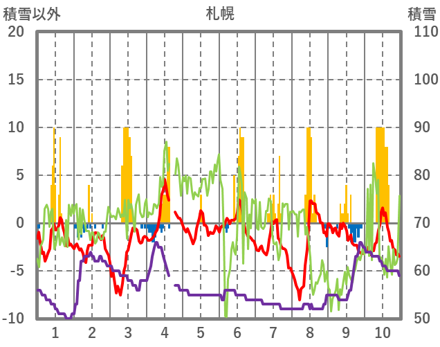 | 日 | 時 | 気温 | 降水 | 風向/風速 | 日照 | 積雪 | 降雪 |