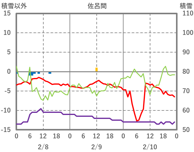 | 日 | 時 | 気温 | 降水 | 風向/風速 | 日照 | 積雪 | 降雪 |