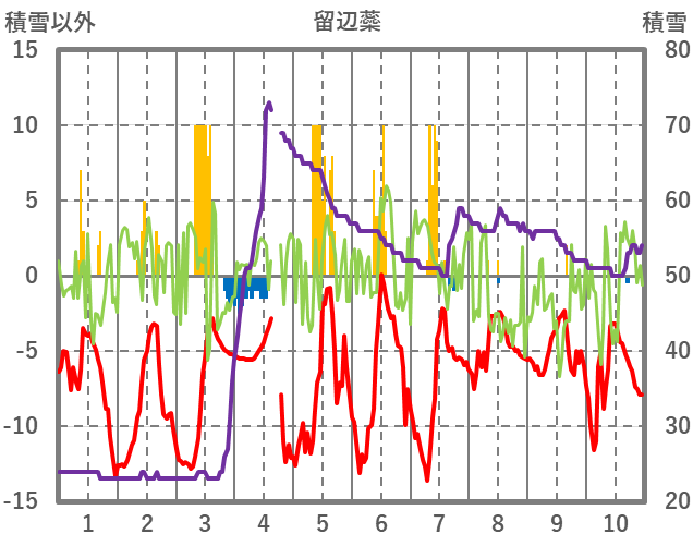 | 日 | 時 | 気温 | 降水 | 風向/風速 | 日照 | 積雪 | 降雪 |