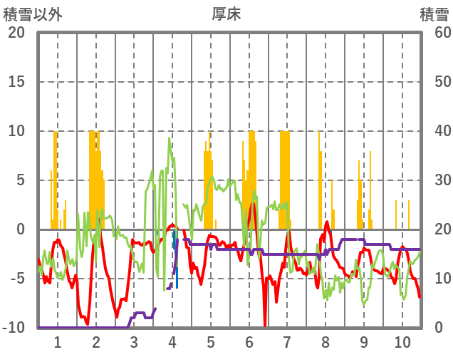 | 日 | 時 | 気温 | 降水 | 風向/風速 | 日照 | 積雪 | 降雪 |