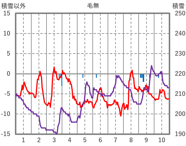| 日 | 時 | 気温 | 降水 | 風向/風速 | 日照 | 積雪 | 降雪 |