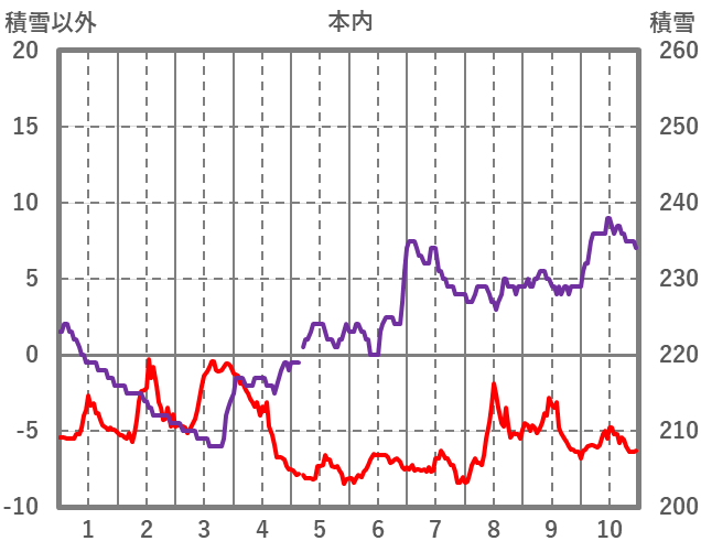 | 日 | 時 | 気温 | 降水 | 風向/風速 | 日照 | 積雪 | 降雪 |