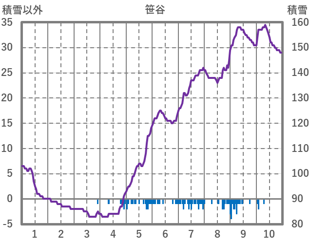 | 日 | 時 | 気温 | 降水 | 風向/風速 | 日照 | 積雪 | 降雪 |