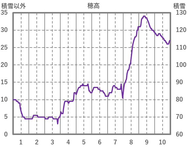 | 日 | 時 | 気温 | 降水 | 風向/風速 | 日照 | 積雪 | 降雪 |