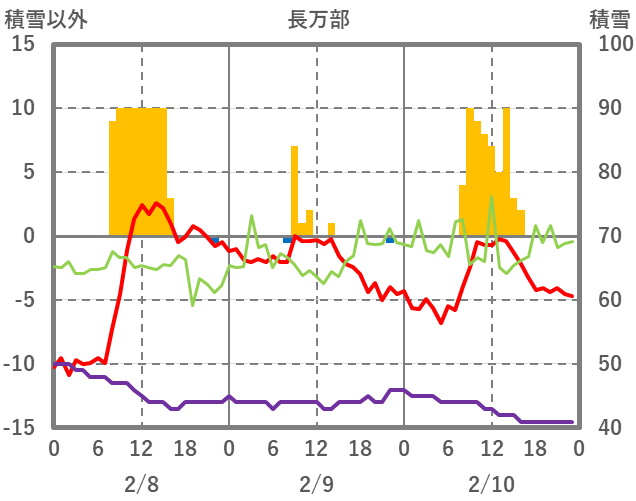 | 日 | 時 | 気温 | 降水 | 風向/風速 | 日照 | 積雪 | 降雪 |