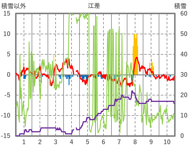 | 日 | 時 | 気温 | 降水 | 風向/風速 | 日照 | 積雪 | 降雪 |