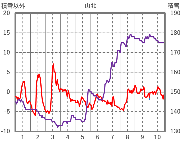 | 日 | 時 | 気温 | 降水 | 風向/風速 | 日照 | 積雪 | 降雪 |