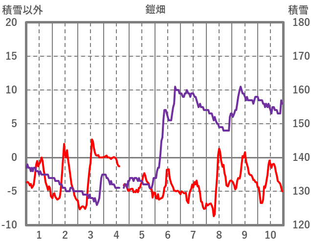 | 日 | 時 | 気温 | 降水 | 風向/風速 | 日照 | 積雪 | 降雪 |