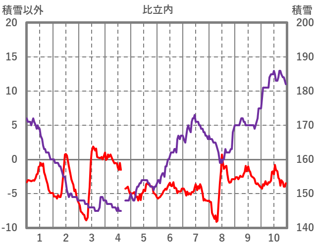 | 日 | 時 | 気温 | 降水 | 風向/風速 | 日照 | 積雪 | 降雪 |