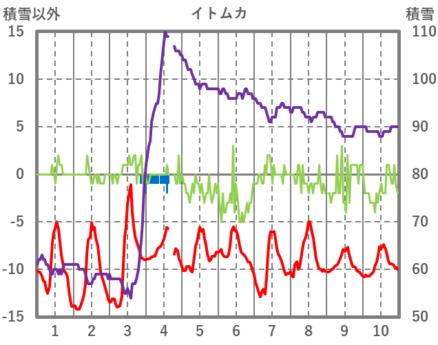 | 日 | 時 | 気温 | 降水 | 風向/風速 | 日照 | 積雪 | 降雪 |