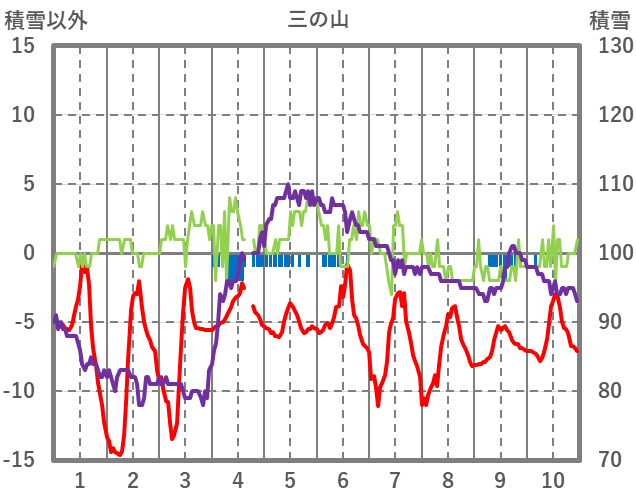 | 日 | 時 | 気温 | 降水 | 風向/風速 | 日照 | 積雪 | 降雪 |