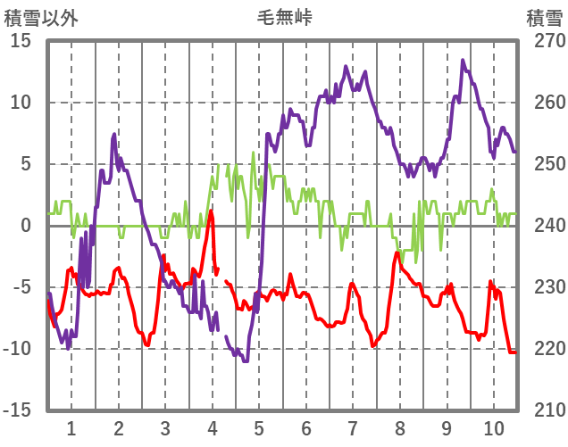 | 日 | 時 | 気温 | 降水 | 風向/風速 | 日照 | 積雪 | 降雪 |