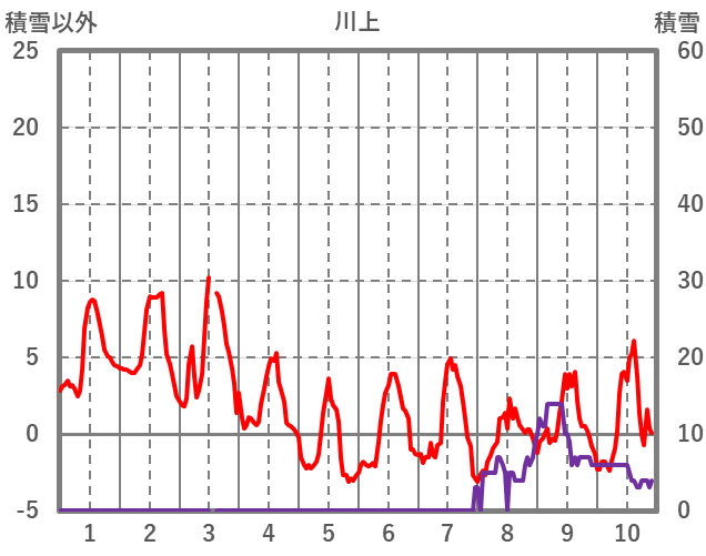 | 日 | 時 | 気温 | 降水 | 風向/風速 | 日照 | 積雪 | 降雪 |