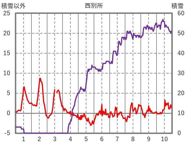 | 日 | 時 | 気温 | 降水 | 風向/風速 | 日照 | 積雪 | 降雪 |