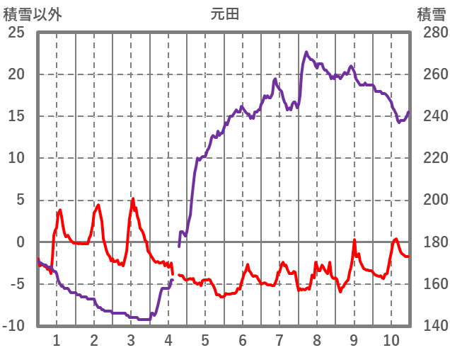 | 日 | 時 | 気温 | 降水 | 風向/風速 | 日照 | 積雪 | 降雪 |