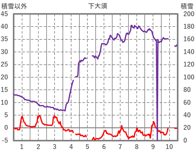 | 日 | 時 | 気温 | 降水 | 風向/風速 | 日照 | 積雪 | 降雪 |