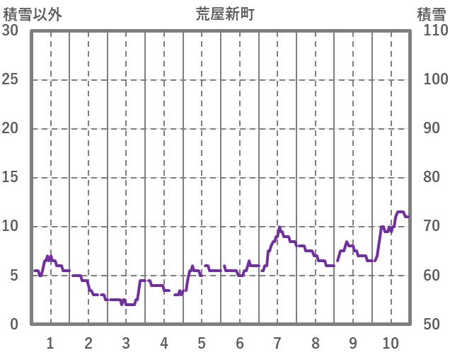 | 日 | 時 | 気温 | 降水 | 風向/風速 | 日照 | 積雪 | 降雪 |