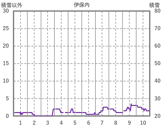 | 日 | 時 | 気温 | 降水 | 風向/風速 | 日照 | 積雪 | 降雪 |