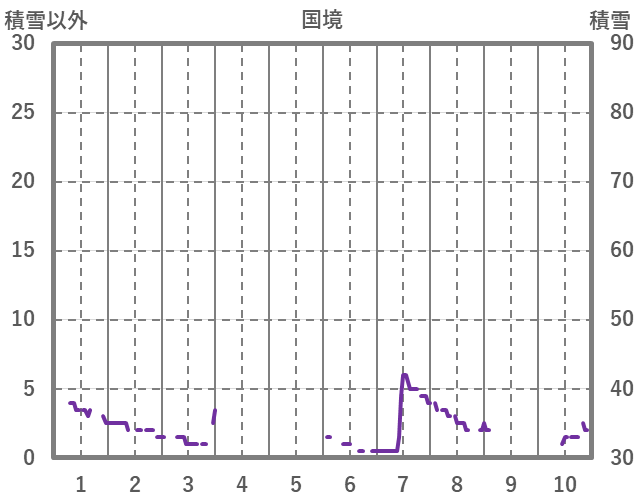 | 日 | 時 | 気温 | 降水 | 風向/風速 | 日照 | 積雪 | 降雪 |