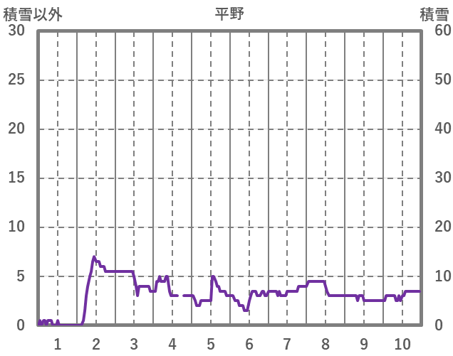 | 日 | 時 | 気温 | 降水 | 風向/風速 | 日照 | 積雪 | 降雪 |