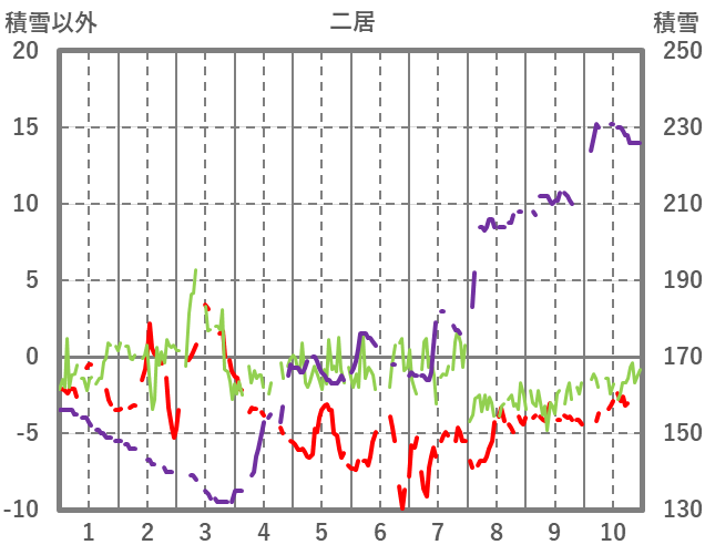| 日 | 時 | 気温 | 降水 | 風向/風速 | 日照 | 積雪 | 降雪 |