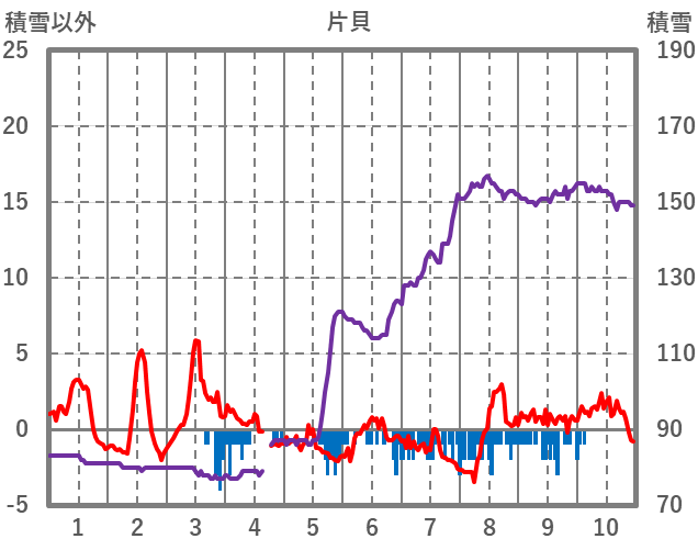 | 日 | 時 | 気温 | 降水 | 風向/風速 | 日照 | 積雪 | 降雪 |
