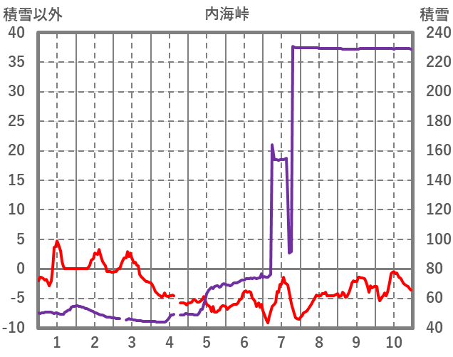 | 日 | 時 | 気温 | 降水 | 風向/風速 | 日照 | 積雪 | 降雪 |