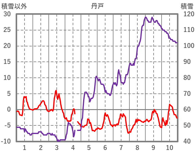 | 日 | 時 | 気温 | 降水 | 風向/風速 | 日照 | 積雪 | 降雪 |