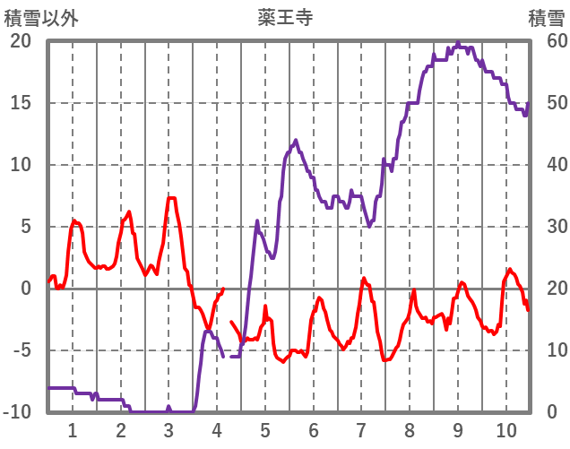 | 日 | 時 | 気温 | 降水 | 風向/風速 | 日照 | 積雪 | 降雪 |