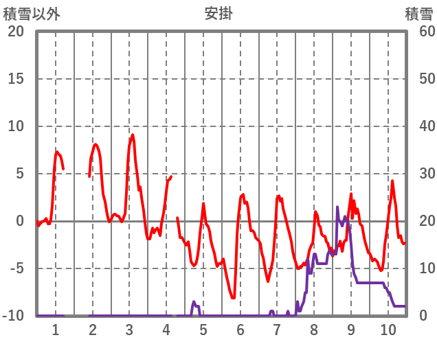 | 日 | 時 | 気温 | 降水 | 風向/風速 | 日照 | 積雪 | 降雪 |