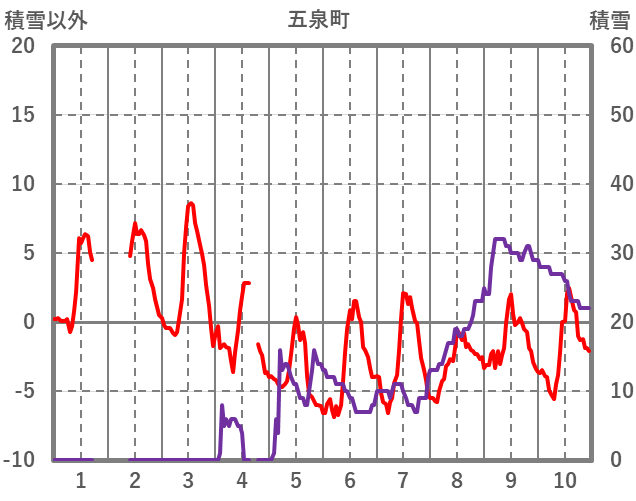 | 日 | 時 | 気温 | 降水 | 風向/風速 | 日照 | 積雪 | 降雪 |