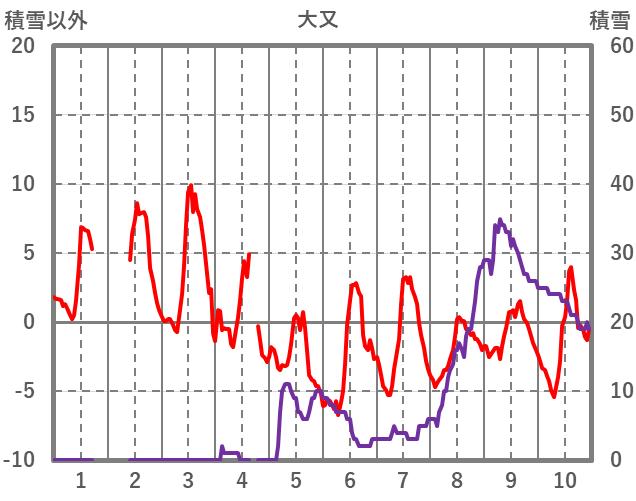 | 日 | 時 | 気温 | 降水 | 風向/風速 | 日照 | 積雪 | 降雪 |