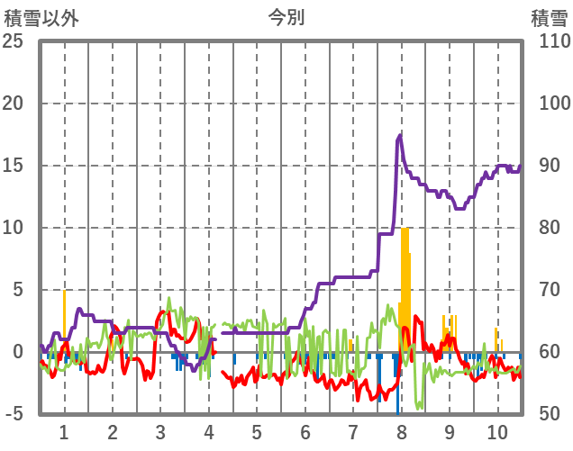 | 日 | 時 | 気温 | 降水 | 風向/風速 | 日照 | 積雪 | 降雪 |