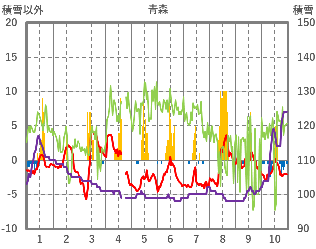 | 日 | 時 | 気温 | 降水 | 風向/風速 | 日照 | 積雪 | 降雪 |