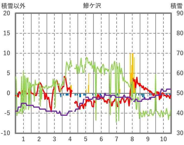 | 日 | 時 | 気温 | 降水 | 風向/風速 | 日照 | 積雪 | 降雪 |