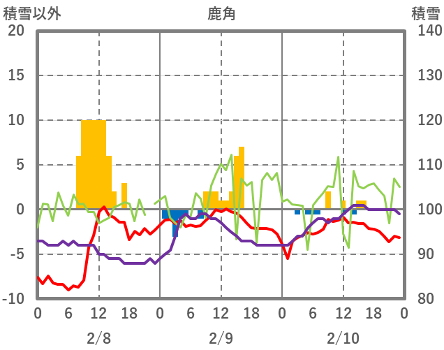| 日 | 時 | 気温 | 降水 | 風向/風速 | 日照 | 積雪 | 降雪 |
