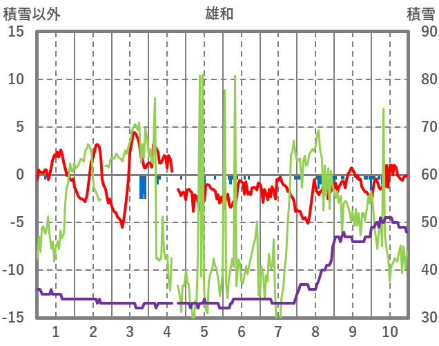 | 日 | 時 | 気温 | 降水 | 風向/風速 | 日照 | 積雪 | 降雪 |