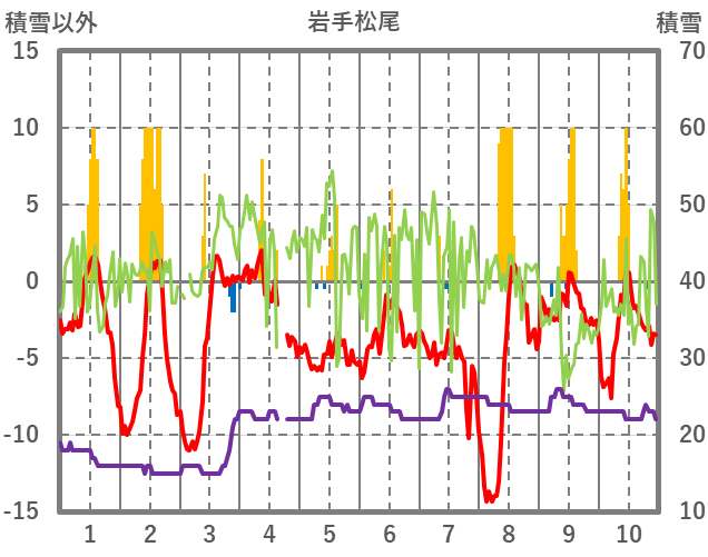 | 日 | 時 | 気温 | 降水 | 風向/風速 | 日照 | 積雪 | 降雪 |