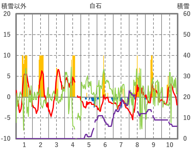 | 日 | 時 | 気温 | 降水 | 風向/風速 | 日照 | 積雪 | 降雪 |