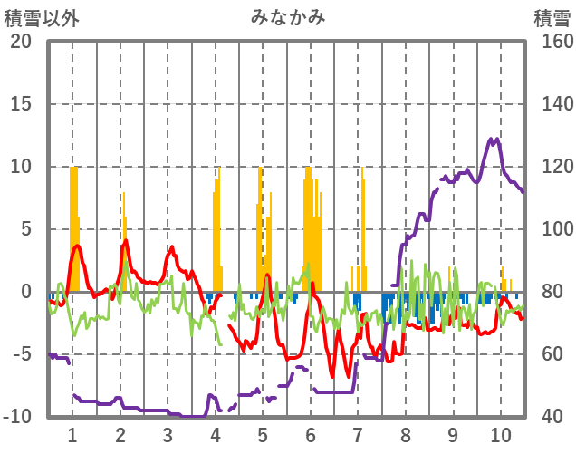 | 日 | 時 | 気温 | 降水 | 風向/風速 | 日照 | 積雪 | 降雪 |