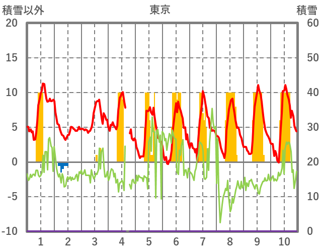 | 日 | 時 | 気温 | 降水 | 風向/風速 | 日照 | 積雪 | 降雪 |