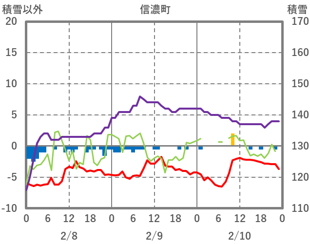 | 日 | 時 | 気温 | 降水 | 風向/風速 | 日照 | 積雪 | 降雪 |