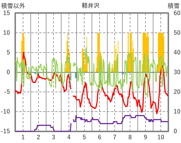 | 日 | 時 | 気温 | 降水 | 風向/風速 | 日照 | 積雪 | 降雪 |