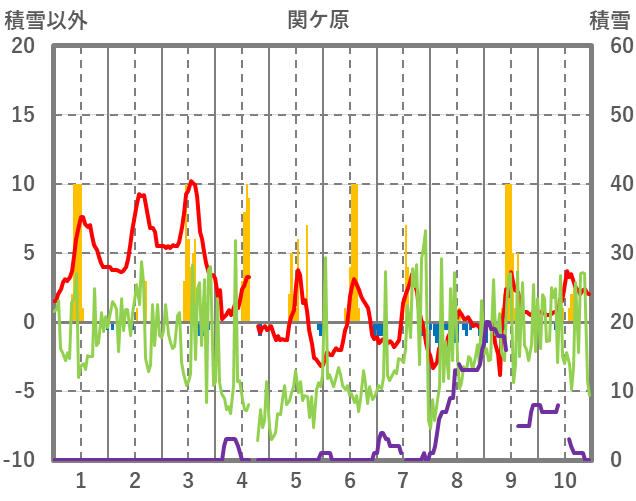 | 日 | 時 | 気温 | 降水 | 風向/風速 | 日照 | 積雪 | 降雪 |