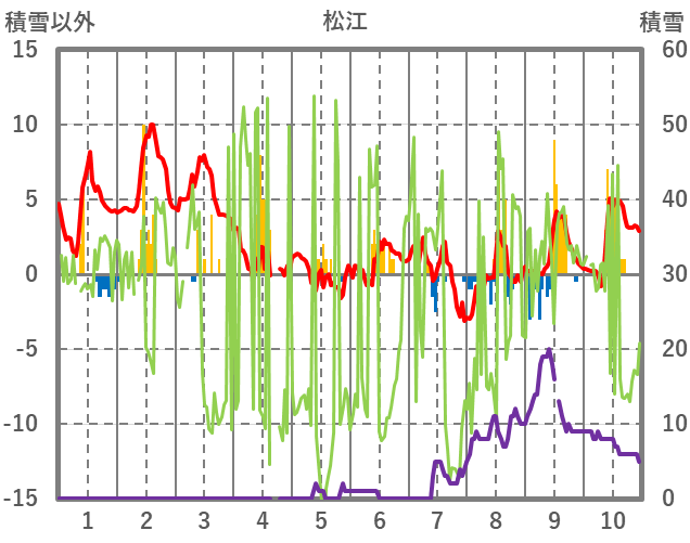 | 日 | 時 | 気温 | 降水 | 風向/風速 | 日照 | 積雪 | 降雪 |