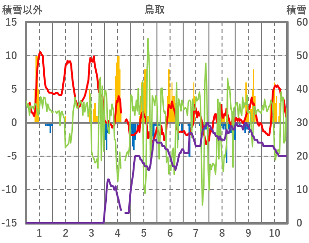 | 日 | 時 | 気温 | 降水 | 風向/風速 | 日照 | 積雪 | 降雪 |
