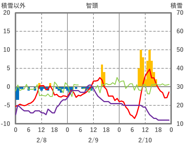 | 日 | 時 | 気温 | 降水 | 風向/風速 | 日照 | 積雪 | 降雪 |